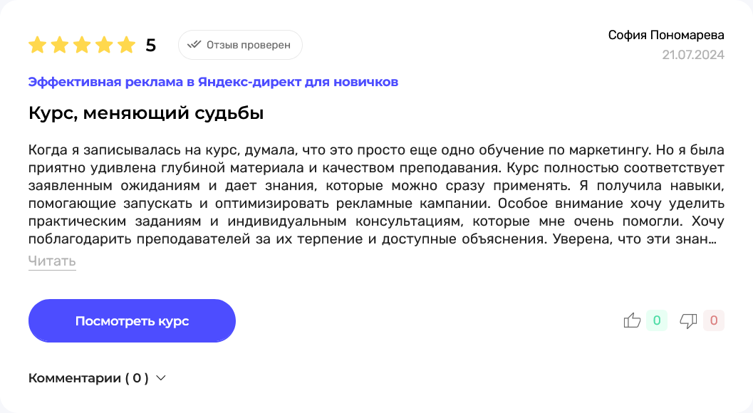 Ученики называют обучение «курсом, который меняет жизнь», рассказывают, что были удивлены глубиной материала и качеством преподавания.