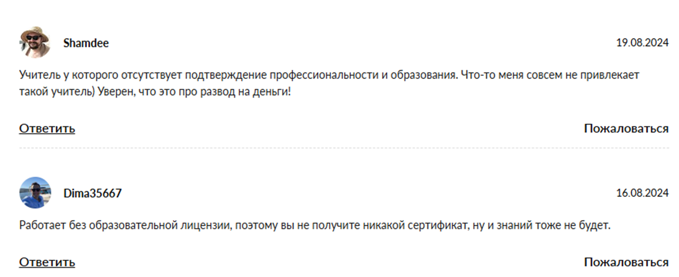 Обещает 17 лет опыта, а доказательств ноль. Курсы без лицензии, отзывы негативные. Очередная пустышка для выкачивания денег.