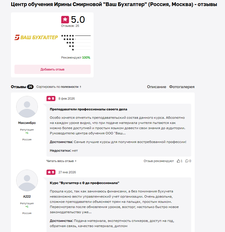Если вы уже проходили курсы для бухгалтеров Ирины Смирновой, обязательно поделитесь впечатлениями в отзывах. Так вы поможете другим людям сделать правильный выбор.