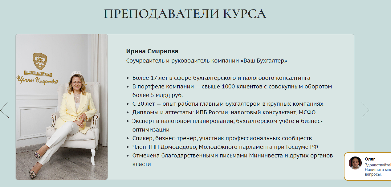 Деятельность и курсы бухгалтера Ирины Смирновой