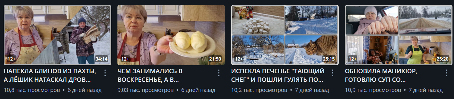 Тгк «Из Москвы в деревню» или просто Марина в других соцсетях собирает десятки тысяч подписчиков. Например в Яндекс Дзен у семьи Кашеверовых более 15 000 участников. Там женщина постит не просто видеоролики и рекламу, но и различные статьи с рецептами и другими лайфхаками для жизни в деревне.