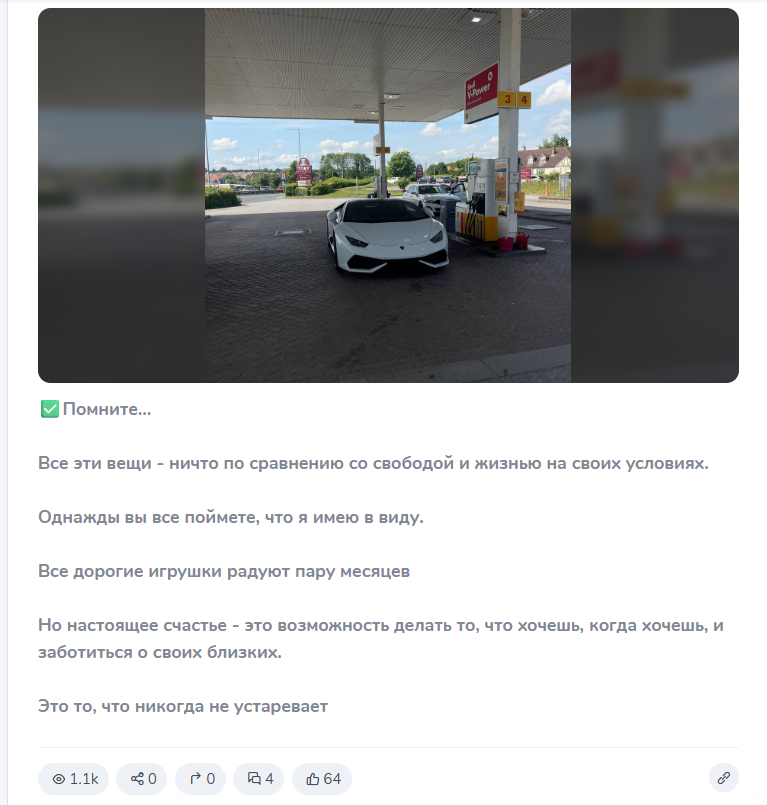 Паблику уже 2 года, но активно вести его начали только в ноябре 2024 года. Трейдер уверяет, что умение торговать на бирже дарует ему свободу. Но сам как таковым обучением в закрытом канале не занимается. Нет ни одной публикации, где он демонстрировал бы свою уникальную систему прогнозов, раскрывал про методы, которые он использует, или описывал подробно базовые понятия для новичков.