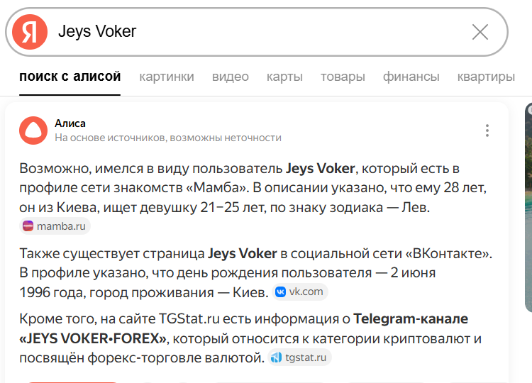 Сейчас у автора есть паблик JEYS VOKER FOREX и приватный канал JEYS VIP FX для торгов. О втором в сети мало информации, даже в TGStat. Возможно, он создан совсем недавно. Но если бы он приносил прибыль подписчикам, о нем стало бы известно в сети. То, что он непопулярен – не плюс, а минус.