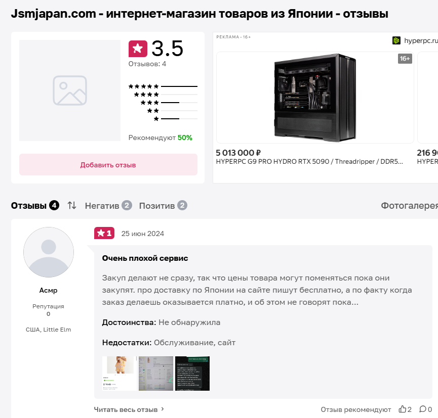 Мы не рекомендуем пользоваться услугами JSM Japan для покупок из Японии в 2025 году. Если вы имели опыт работы с данным маркетплейсом, поделитесь своей историей в комментариях.