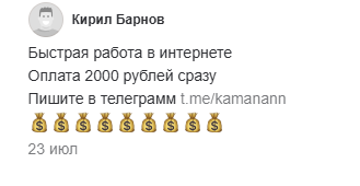 Автор не может рассказать, чем конкретно он занимается. При этом с лета 2025 года ссылки на его аккаунт стали рекламироваться в различных группах, связанных с заработком. Отметим, что рассылкой занимаются не менее подозрительные аккаунты, чем сам Камананн. Так, пользователь Имя Фамилия в ВК удалил аккаунт после размещения объявления
