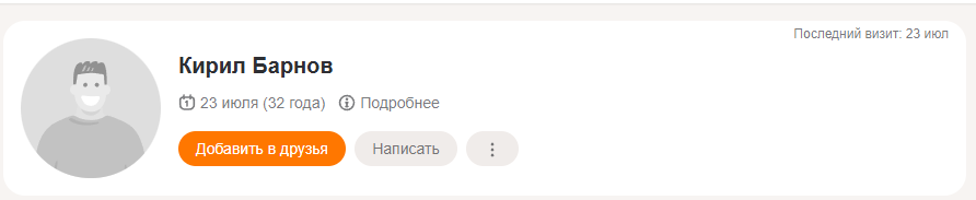 А Кирил Барнов в ОК был зарегистрирован и заходил в сеть только 23 июля, в день размещения объявления.