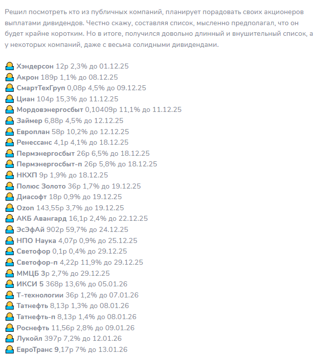 - предстоящие дивиденды;