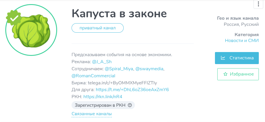 Команда Евгения, RomanCommercial, J A Sh. Помимо этого, есть ссылка на сертификат регистрации телеграмм-канала «Капуста в законе» в реестре РКН — rkn link/nR4. Какие нюансы важно отметить:
