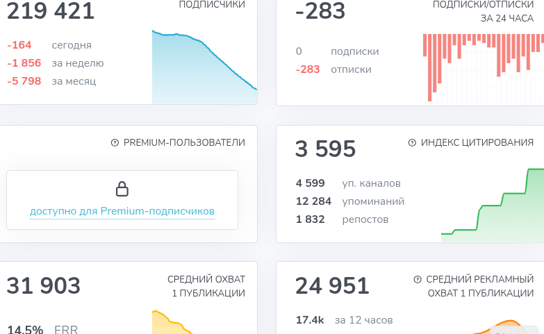 Ввиду ручного одобрения заявки на вступление, срок рассмотрения может затянуться. Мы решили не ждать и проверили проект через аналитический инструмент TGStat. «Пробивка» телеграмм-канала «Капуста в законе» показала, что от аудитории в более 219 000 человек толку мало, так как идут активные отписки — свыше 5700 за месяц.