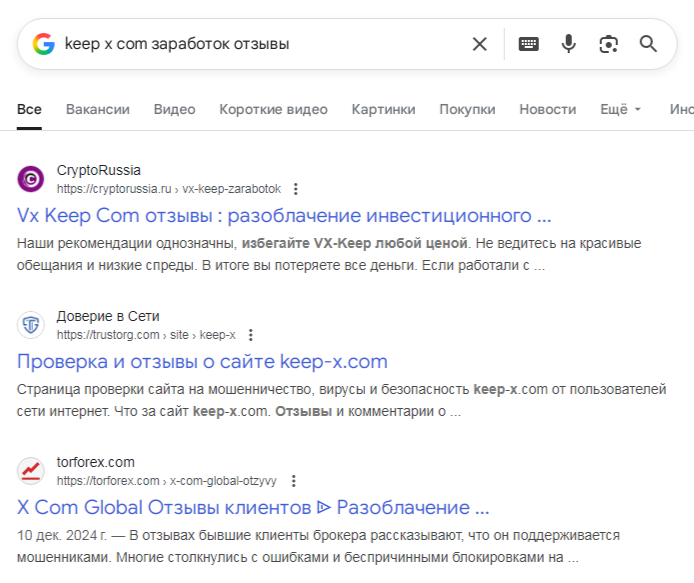 Когда появился источник, сколько он проработал и был ли запущен вообще – неизвестно. На ноябрь 2025 года этот доменный адрес находится на продаже. В интернете об организации для заработка Keep X Com нет базовой информации отзывов, что говорит о полном отсутствии у нее клиентов.