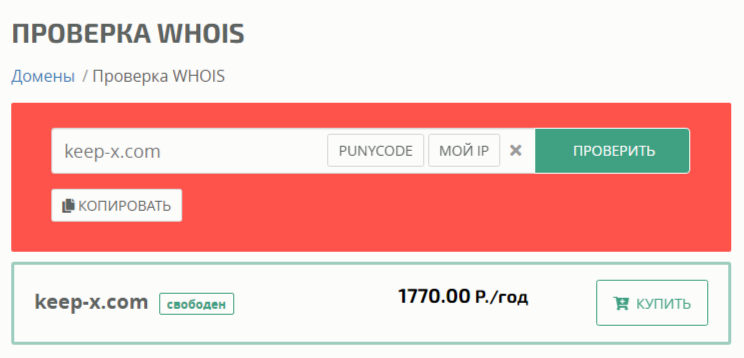 Мы решили узнать характеристики домена, но выяснилось, что такое имя не зарегистрировано, поэтому любой желающий может его приобрести за 1 770 рублей с периодической годовой оплатой. Получается, что данная компания сейчас: либо не работает вообще, либо находится по другому адресу.