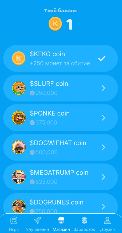 Оболочка приложения Keko Killer была максимально простой. Рядовой игрок мог заходить, выполнять различные задания и получать вознаграждение в определенной криптовалюте. В приложении была прокачка дохода и ежедневные квесты.