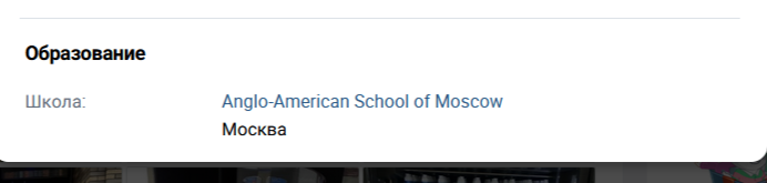 В описании профиля в ВКонтакте молодой человек указал, что получил образование в Anglo-American School of Moscow, однако подтверждений этому нет.