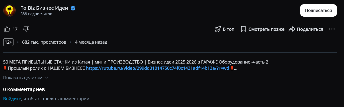 На канале на Рутьюб ситуация похожая: комментариев нет, лайков мало.