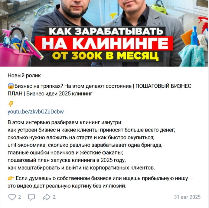 Последний пост вышел в конце августа 2025 года, с тех пор, вероятно, страница заброшена. Инвестор также ведет канал на Рутьюб, который называется «To Biz Бизнес Идеи». В апреле 2026 года на него подписаны 388 человек.