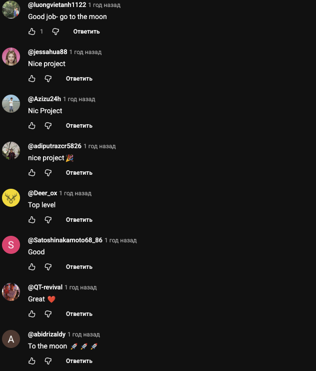 В сети нет отзывов о работе данного проекта. Активность вокруг него выглядит раздутой самими создателями. Под видео на Ютуб-канале можно найти стандартные фразы о том, что проект хорош. Но не исключено, что их оставляли по заказу авторов:
