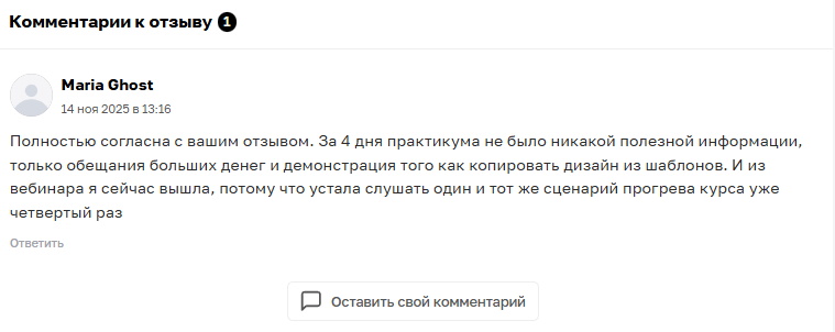 Очередной «гуру» дизайна, обещающий золотые горы за баснословные 115 тысяч рублей, а на деле — предзаписанные видеоуроки без обратной связи. Гарантированный заработок? Чистый обман. Не ведитесь на этот развод!