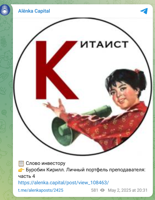 Автор является преподавателем сервиса Alёnka Capital, специалисты платформы даже предлагают ознакомиться с портфелем инвестора: