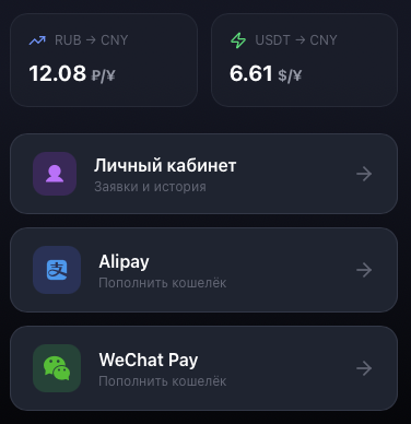 Сервис нельзя рассматривать как полноценный обменник. Фактически платформа оказывает просто услуги пополнения счета в АлиПэй или ВиЧат Пэй. Обменивать можно рубли или USDT и только в одном направлении.