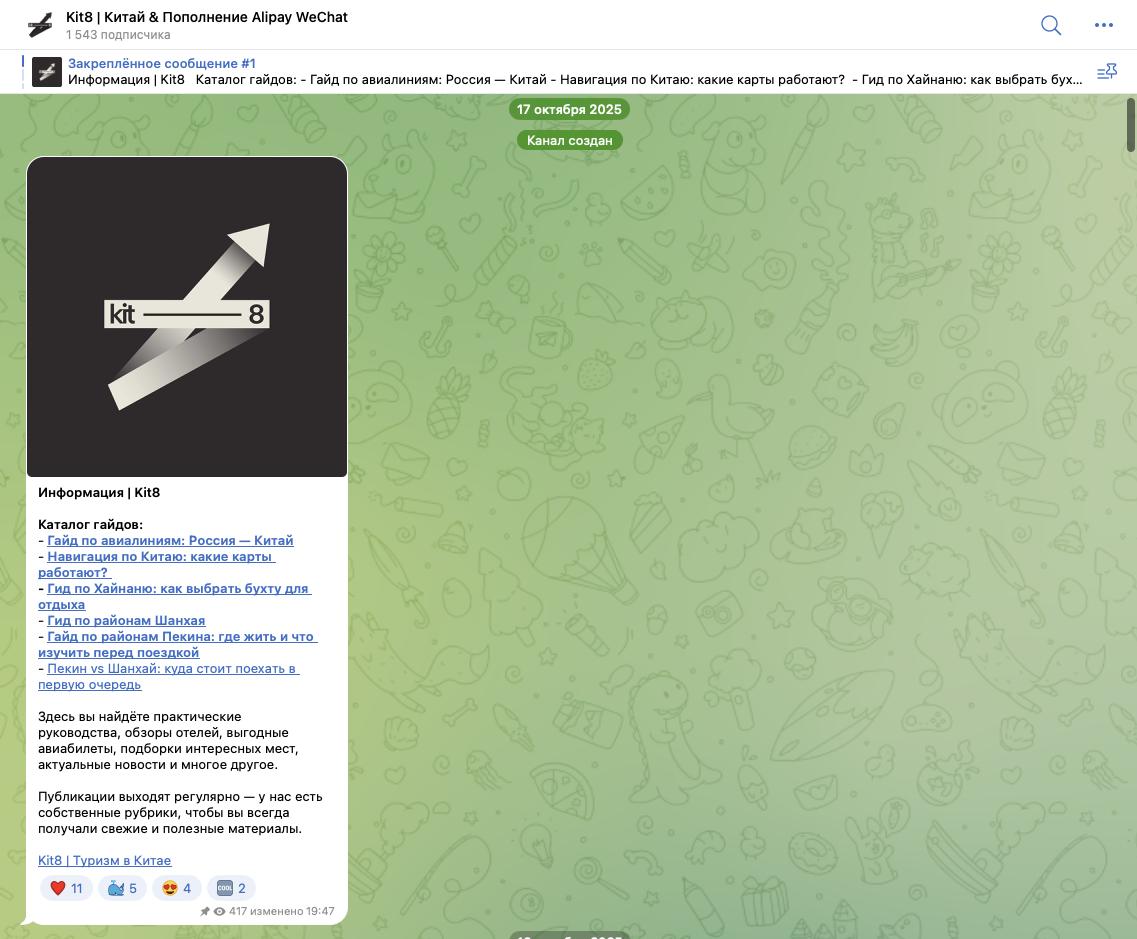 В основном услуги проекта пытаются рекламировать через призму путешествий по Китаю. Хотя у сервиса есть официальный сайт, вся деятельность платформы сводится к взаимодействию с ботом в Тг. О нем расскажем подробнее.