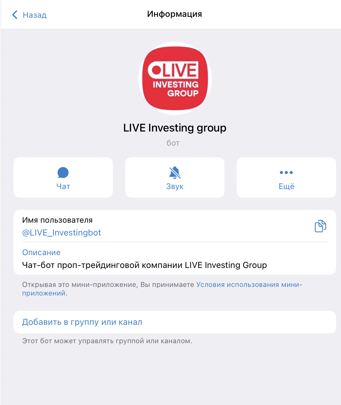 Через бота LIVE_Investingbot в Telegram продвигается комплекс платных услуг: обучение трейдингу и инвестиции в «прибыльные» стратегии. Кроме того, доступ к закрытым чатам и консультации.