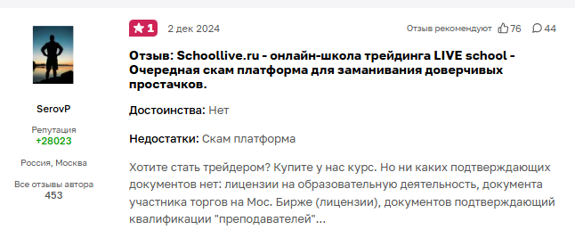 С другой стороны, стоит признать, что у проекта есть и своя аудитория, которая, вероятно, довольна обучением. Однако больше всего настораживает именно недостаток живых и развернутых обсуждений на независимых площадках. Есть один-единственный отклик в сети о школе, но тоже без упоминаний именно Сотиева Константина.