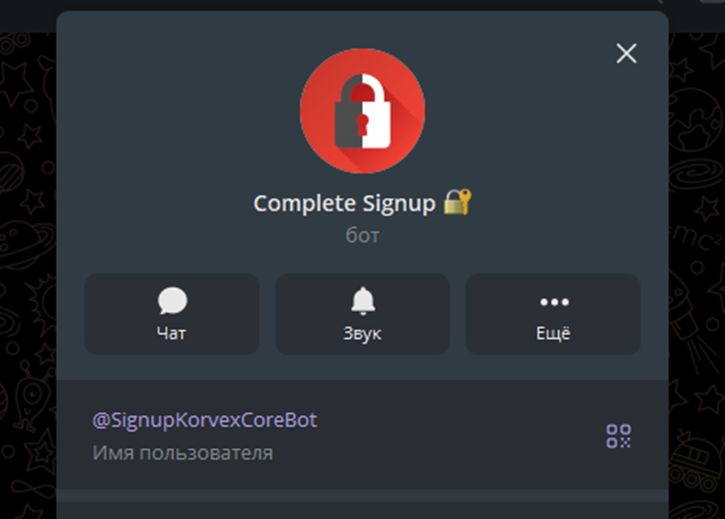 Вход происходит через бот SignupKorvexCoreBot. Полный функционал приложения неизвестен.