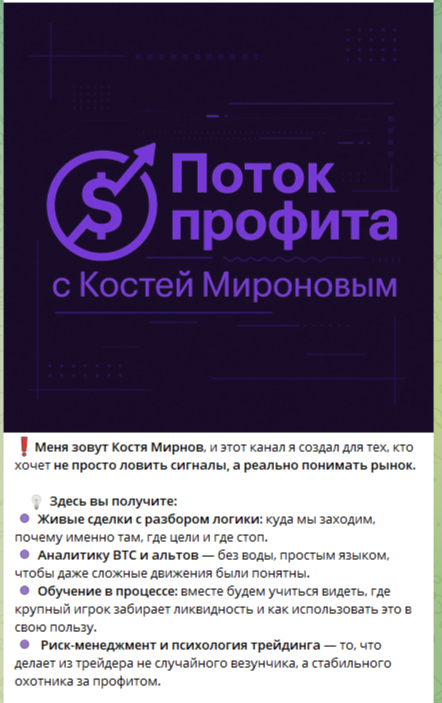 Канал в Телеграм «Поток профита» Кости Миронова»: анализ публикуемого контента Kostya XRP и отзывы о нем от подписчиков преокта