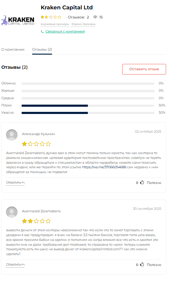 Kraken Capital Limited – очередная шарашкина контора, обещающая золотые горы, а на деле – пустышка без лицензий и реальных гарантий.