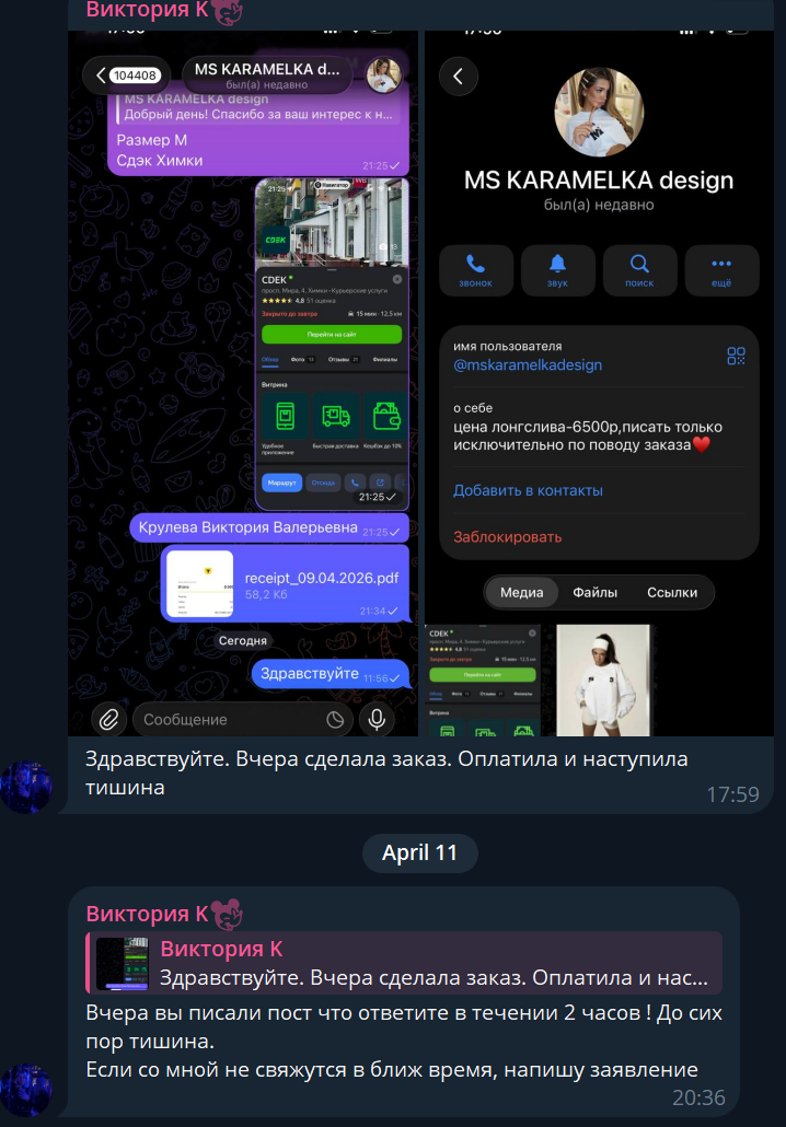 Мы не рекомендуем взаимодействовать с MS Karamelka design. Если вы уже оформляли заказ, поделитесь своей историей в комментариях.