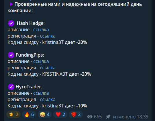 Кристина часто пишет о проп-трейдинге и продвигает 3 компании: Hash Hedge, Funding Pips и HyroTrader. Постоянно рассказывает о том, какие преимущества дает проп-трейдинг новичкам и опытным трейдерам.