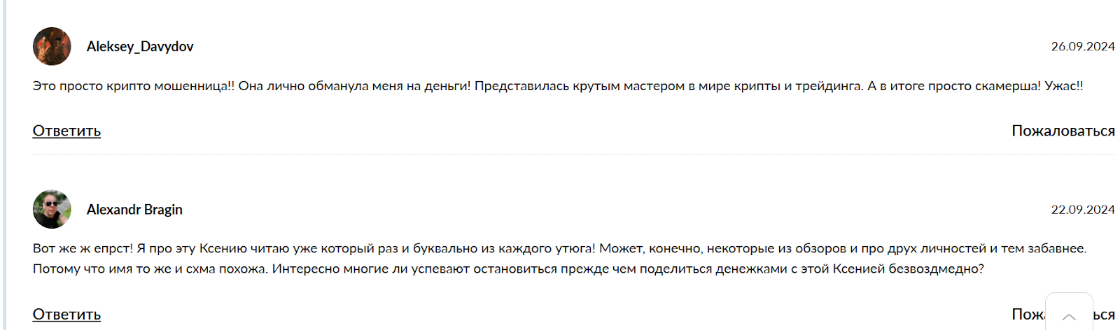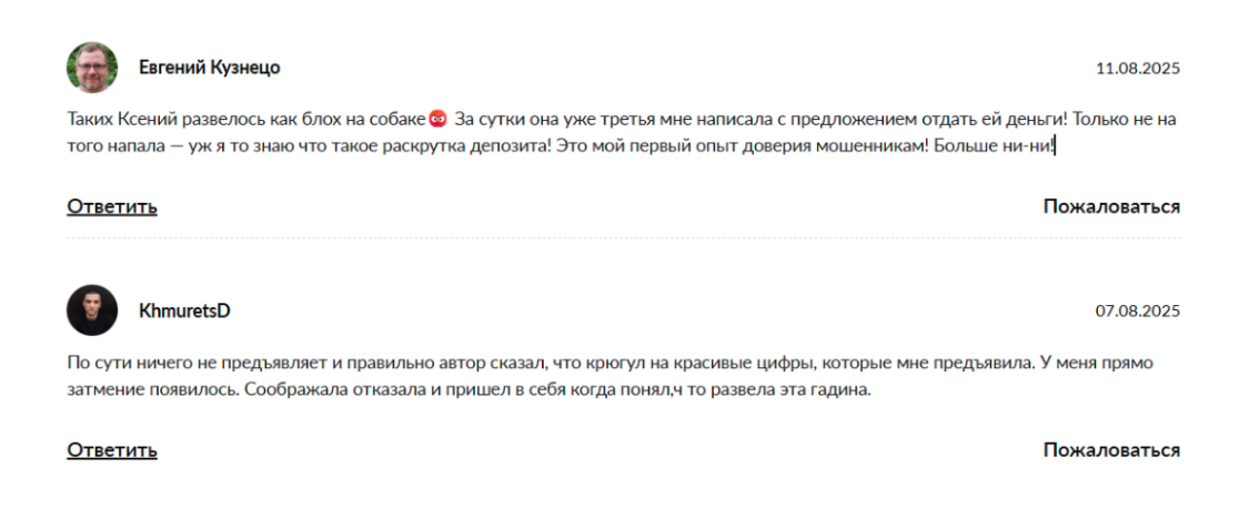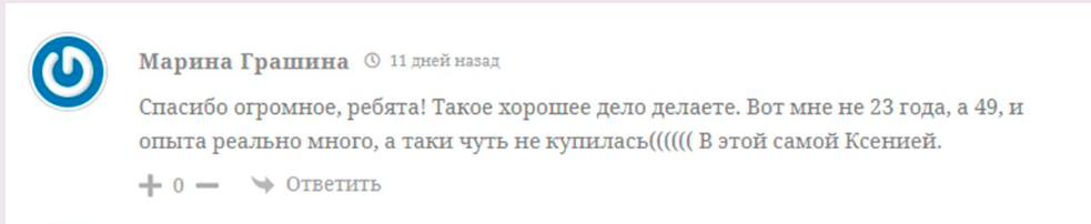 Некоторые клиенты называют проект мошенническим и указывают, что потеряли деньги после общения с “Ксенией”.