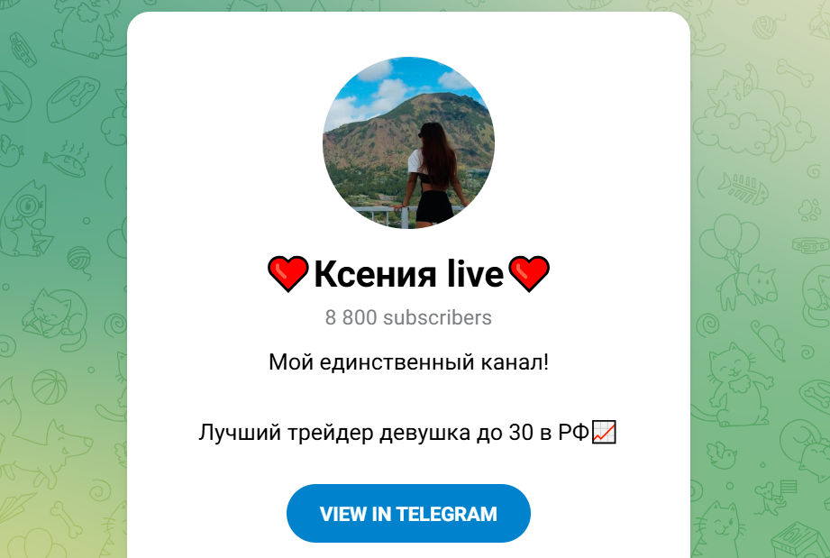 Телеграмм канал “Ксения Live” презентует себя как блог молодого трейдера, который якобы помогает зарабатывать на инвестициях, криптовалютах и финансовых возможностях без стартового капитала.