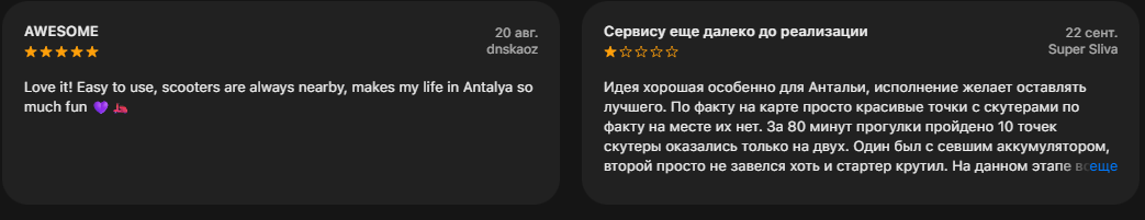 Отзывов для инвестиций, форума тех, кто уже вложился в Lavanta Ride нет, обвинений в скаме не найдено. Но можно почитать отзывы пользователей, которые говорят, что Lavanta Ride – обман. Потенциальные клиенты жалуются на то, что им не удается найти скутеры в отмеченных на карте местах.