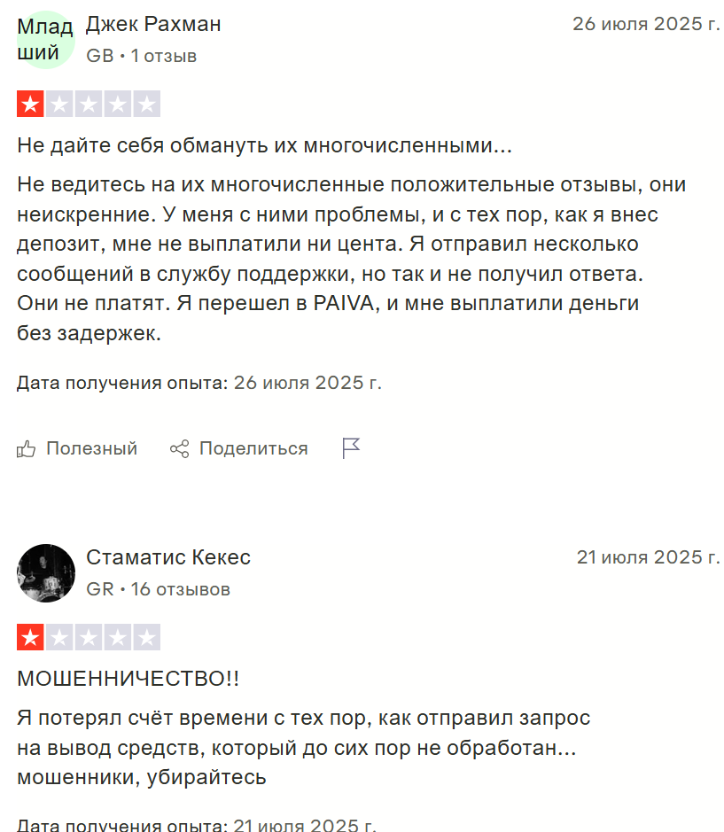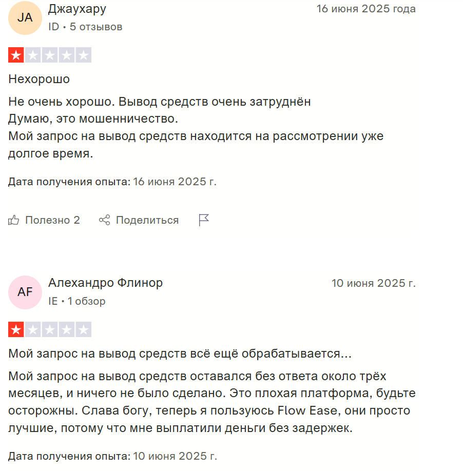 Майнинг-платформа имеет множество негативных отзывов. Многие пользователи сообщают о невозможности вывести средства после участия в майнинге. Один из клиентов отметил, что его запрос на вывод остается в статусе «ожидание» уже около трех месяцев, а поддержка не отвечает на запросы. Другие жалуются, что после небольших успешных выводов сервис блокирует крупные выводы и требует дополнительные депозиты.