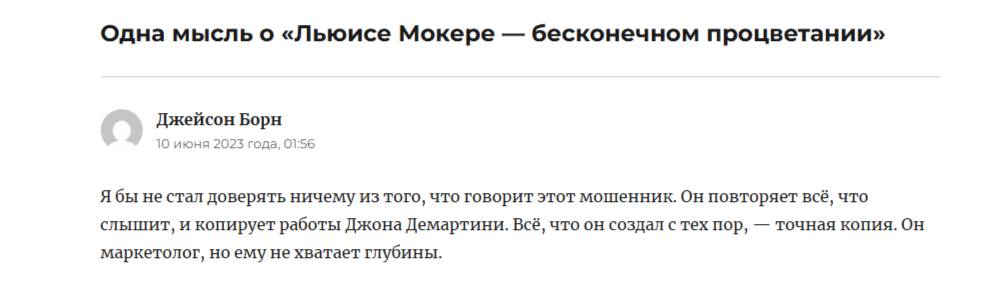 Совсем не довольные, а негативные комментарии о Льюисе и его курсах представлены на сторонних ресурсах в интернете. В этих отзывах преподавателя и эксперта называют мошенником и обвиняют в копировании чужих работа.