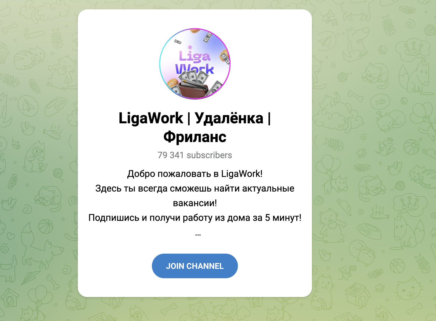 Проект Liga Work отзывы получил негативные. Канал позиционируется как источник удаленной работы и быстрых онлайн заработков. Проект публикует вакансии, микро задания и рекламные офферы, обещающие доход без опыта и вложений.