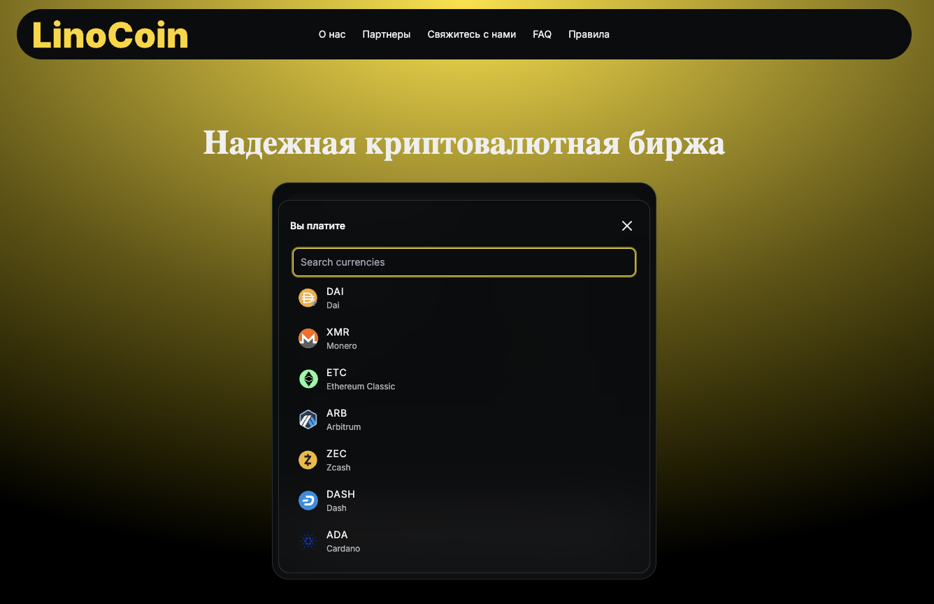 LinoCoin — онлайн-обменник, который его владельцы почему-то называют криптовалютной биржей. При этом инструментов ни децентрализованной, ни централизованной торговли на сервисе не представлено.