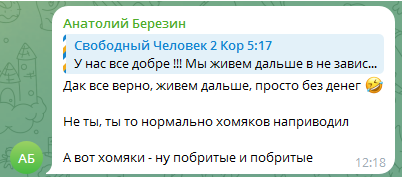 Выводы о владельце аккаунта «Свободный Человек 2 Кор 5:17» в ТГ