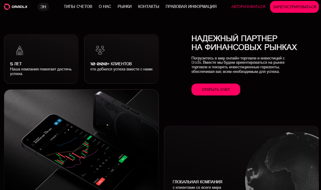 Основной ресурс брокера – Oradlx net. Страница для входа в профиль – Live oradlx net. Согласно презентации, компания работает 5 лет, за это время у нее появилось свыше 10 тыс. клиентов. Сразу обозначим, что отзывами подобная статистика не подтверждена.