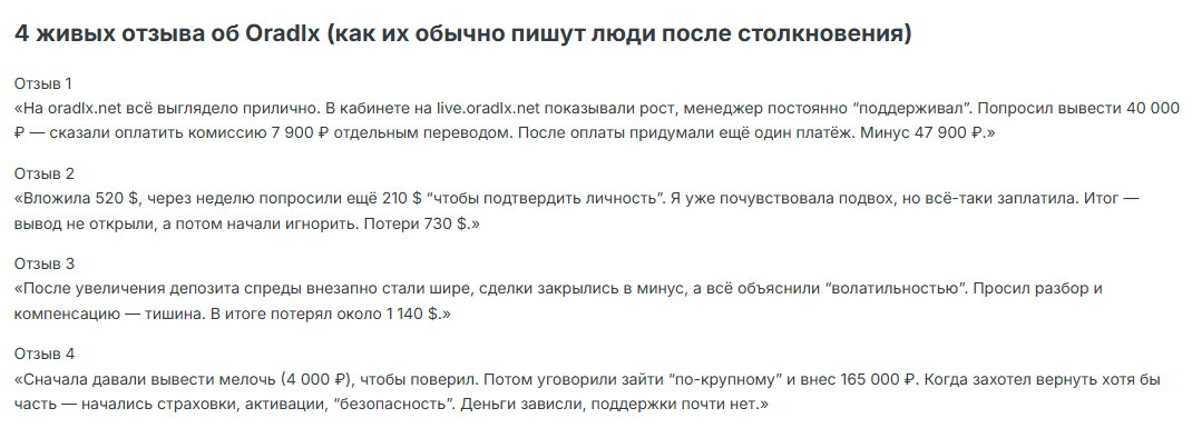 Oradlx net – очередной скам без лицензии и реальных данных о компании. Обещают золотые горы, а на деле – блокируют выплаты и выманивают деньги. Не ведитесь на их уловки!