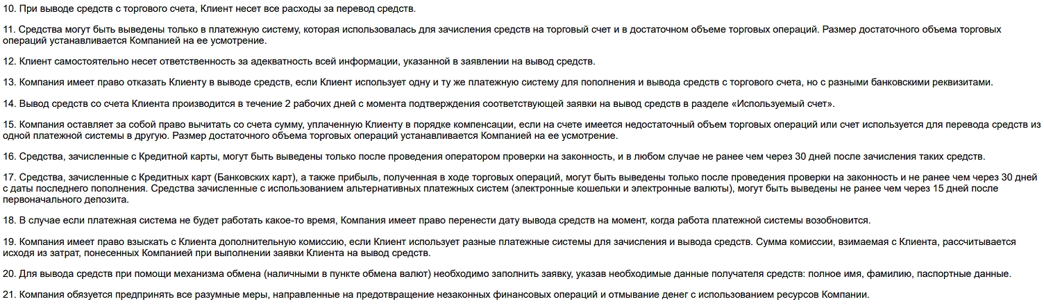По собственному желанию брокер «Рбокнв» может брать любые комиссии и задерживать вывод до 30 суток, если средства зачислены с кредитных карт.