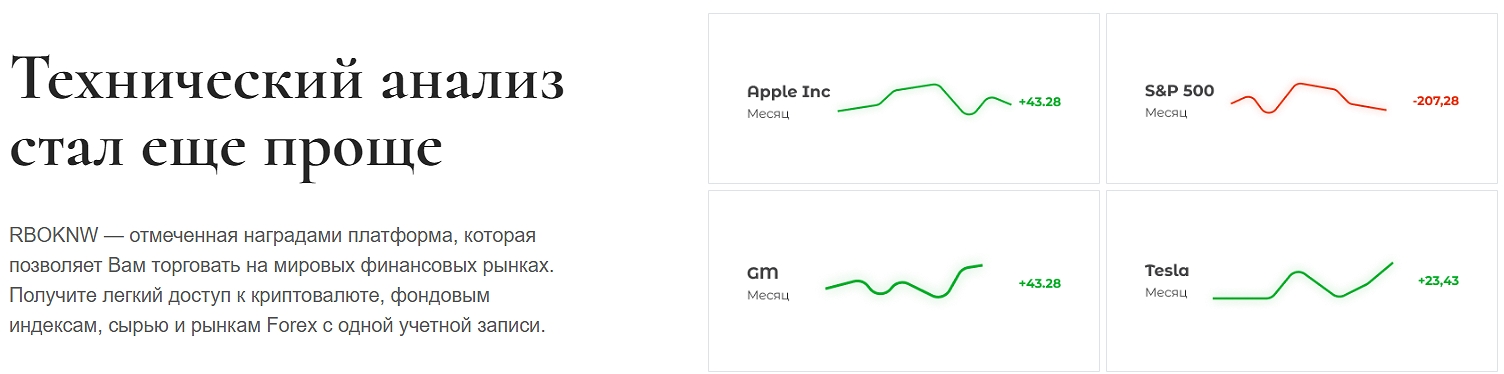 На платформе «Рбокнв» якобы доступен терминал для трейдинга криптой, сырьем, индексами и драгметаллами с выгодными спредами, правда доказательств его существования нет. Владельцы брокера обрабатывают аудиторию историями без конкретики, подтверждая преимущества технического анализа нарисованными от руки графиками.