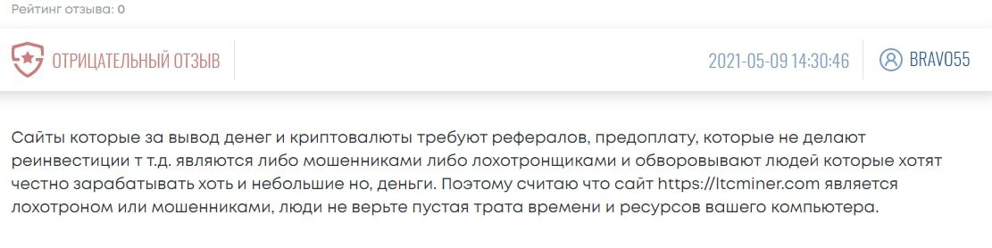 Отзывы о сайте Ltcminer