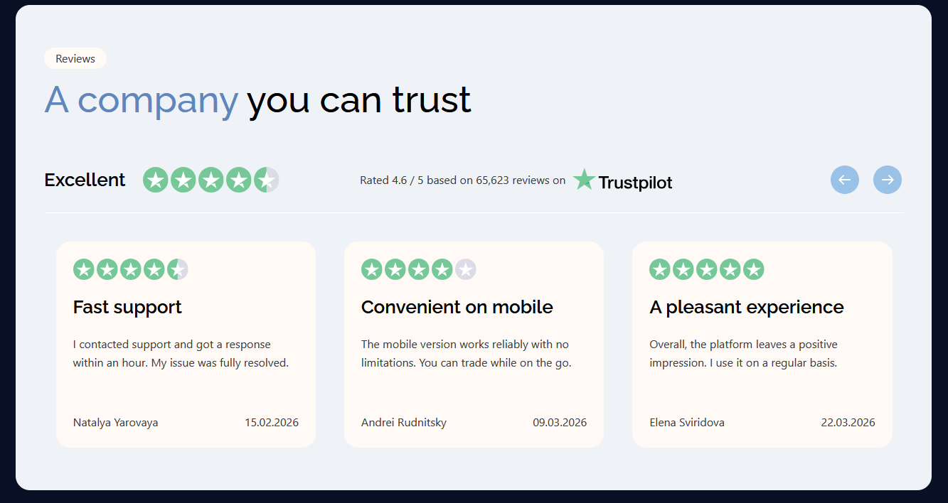 На сайте есть блок с отзывами, ведущий на один из популярных отзовиков, где у компании якобы очень высокая оценка и исключительно положительные комментарии.