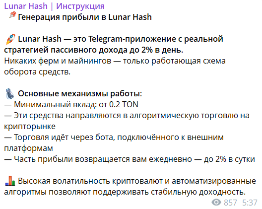LunarHash Bot — очередной «космический» развод: обещают луну с неба, а на деле — пустота и скам.