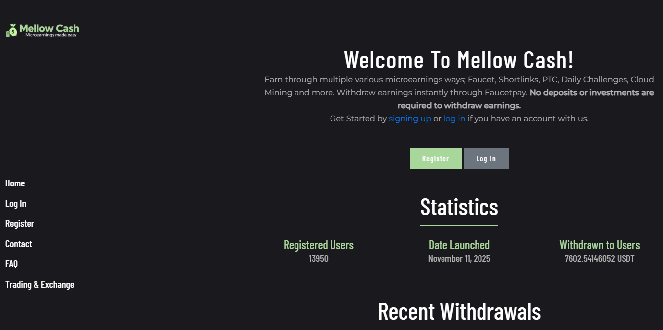 Сайт https m mellowcash com отзывы от пользователей еще не получил. Это многофункциональный кран и платформа для облачного майнинга, работающая под брендом Cash Platforms Inc. Проект запущен 11 ноября 2025 года, его команда заявляет о возможности зарабатывать криптовалюту без обязательных вложений с мгновенным выводом средств через FaucetPay.