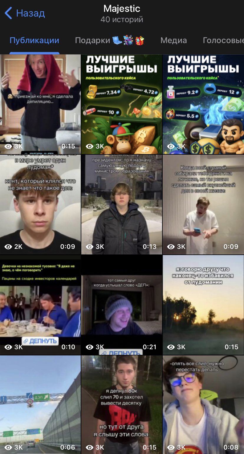 У НФТ-казино есть новостной канал MajesticCase. При этом огромное количество подписчиков не сходится с числом просмотров, которое не достигает и 15%. Данный факт может свидетельствовать о том, что владелец сообщества активно налегал на сервисы для накрутки аудитории за счет ботов.