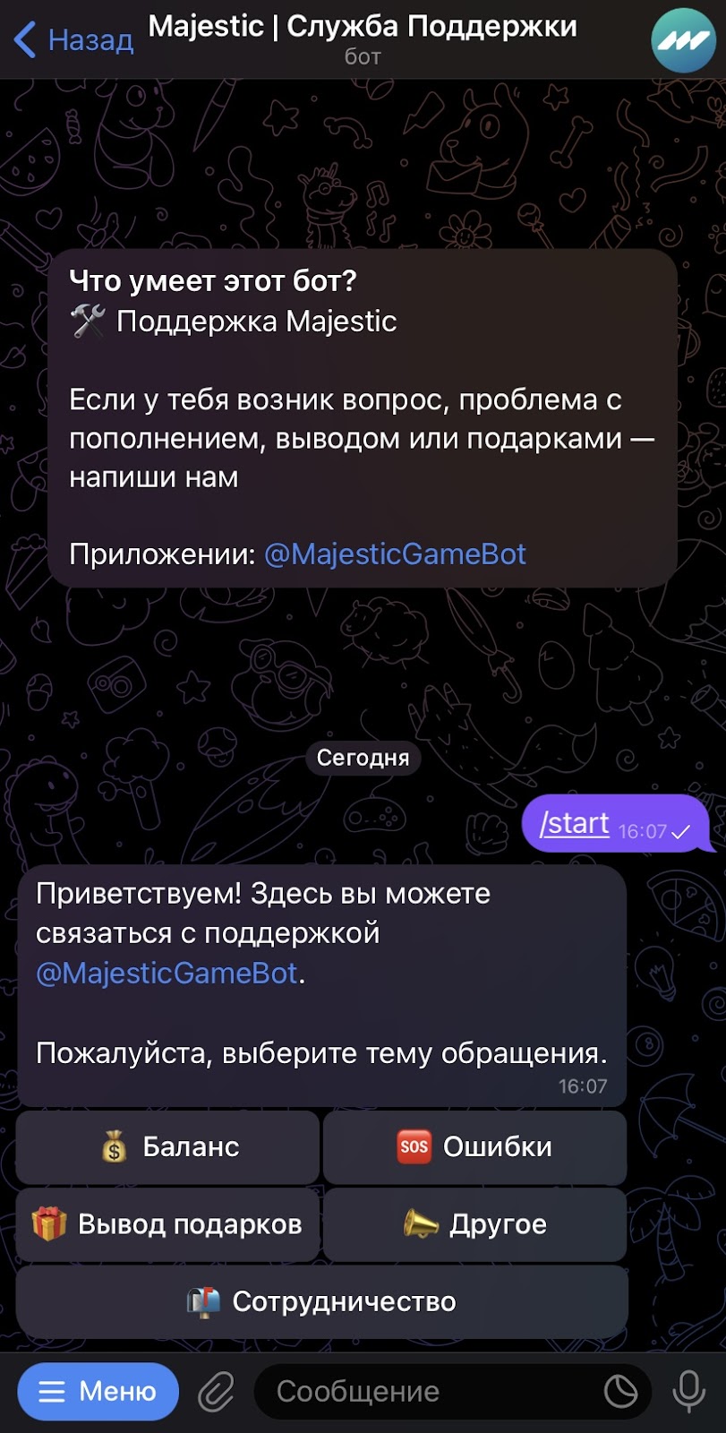 Majestic Gift Bot — очередной развод! Обещают уникальные подарки, а на деле — пустая трата денег. Никакой пользы, только разочарование. Не ведитесь на этот скам!