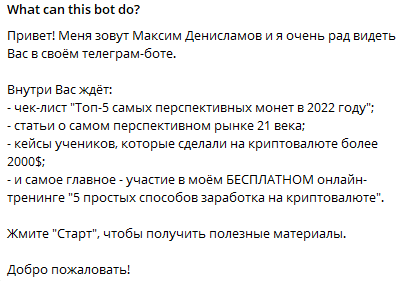Единственный способ выйти на связь с Максимом — телеграм-бот Moneyfestmaxim Bot. Однако он в основном «продвигает» продукты данного тренера и не дает возможности пообщаться с живым человеком.